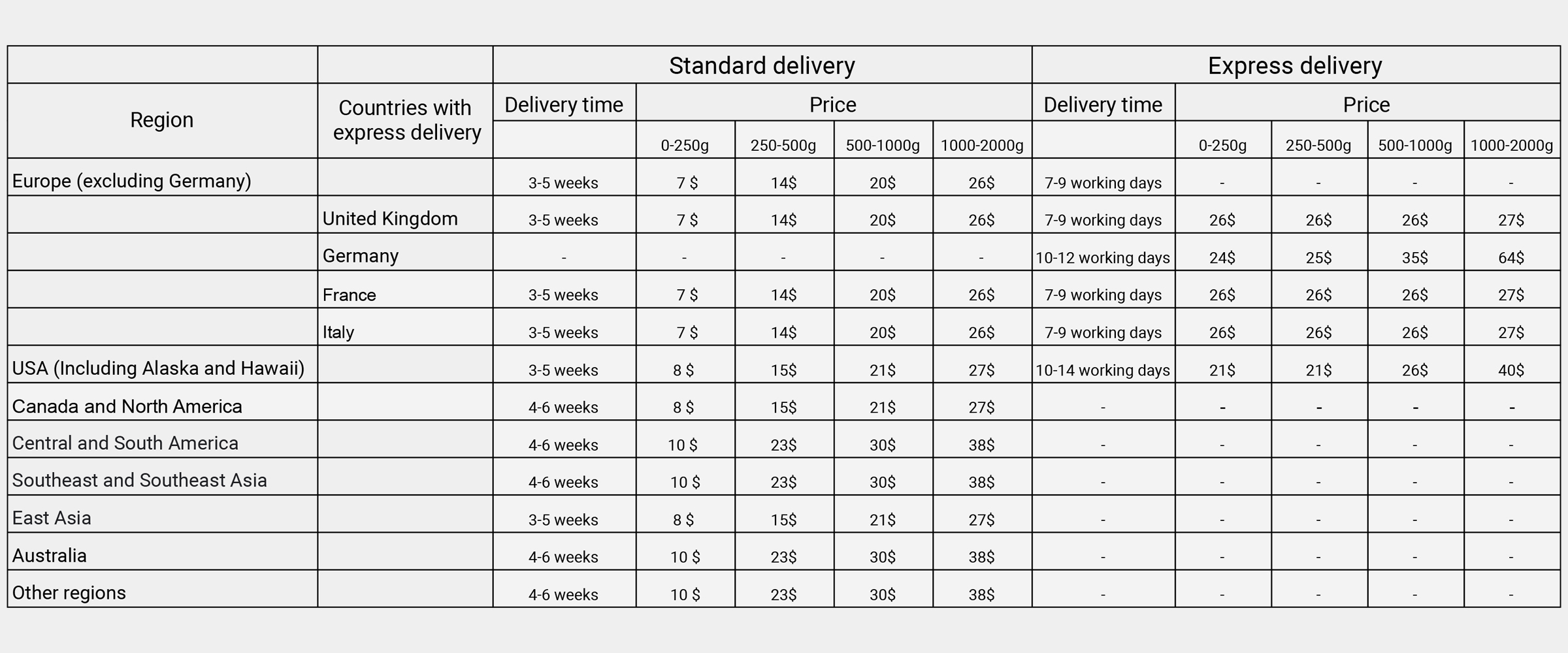 We’re pretty excited about getting your order to you. We ship to all countries except those listed in the Shipping Restrictions section below.